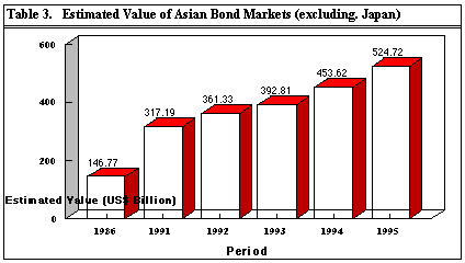 Table 3 shows the growing Asian bond markets (source: HSBC Capital Markets).