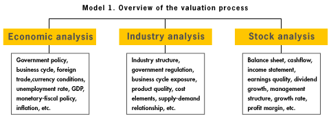 of the stocks prospects (refer to model 1). In general, analysts use various valuation