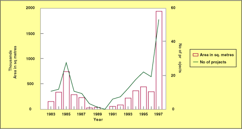 of 15 new office buildings were launched in 1996. The total number of these projects