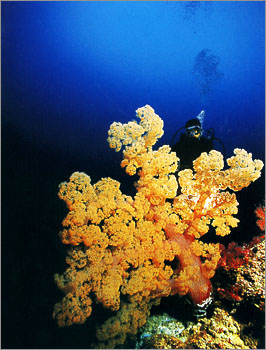 These huge Dendronephthya soft tree corals in deeper water are fully swollen up for feeding. Back | Next