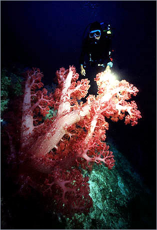 These huge Dendronephthya soft tree corals in deeper water are fully swollen up for feeding.