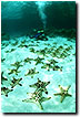 of various sizes stands out. Large aggregations of Horned Sea Stars spawning on shallow