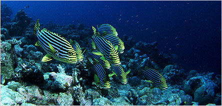 This area has many varieties of Sweetlips, the Oriental Sweetlips (Plectorhinchus orientalis) being among the prettiest and most co-operative to underwater photographers. Back | Next