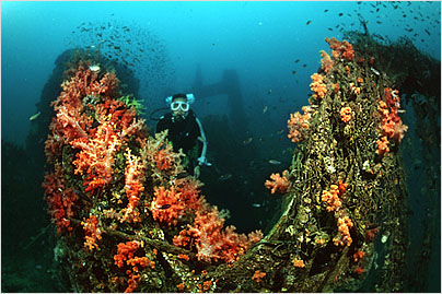 and soft tree corals, the 'Tung Hwang' is the most outstanding shipwreck in Malaysian