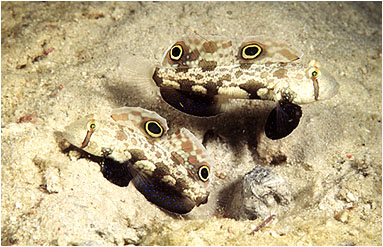 Gobies (Signigobius biocellatus) are observed to share the same burrow on