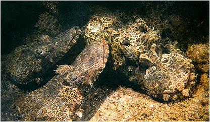 Crocodile Fish (Cociella crocodila) have excellent camouflage against sand or coral rubble. Back | Next