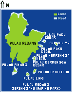 Situated 45km northeast of Kuala Terengganu by ferry, this area has good visibility