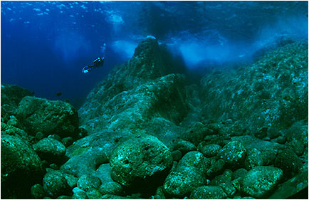 Typical undersea scenery in the clear waters off Pulau Tenggol. The spectacular granite boulders are worn smoothly by centuries of strong currents. Back | Next