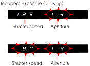 ï If the correct exposure is not possible, the aperture value and/or the shutter speed will blink in the viewfinder to warn you of incorrect exposure