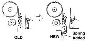3). Change of material for closing curtain arm from February 1983 The material of closing curtain arm has been changed from titanium into carbon steel for reinforcement. 4). Improvement of closing curtain brake,e from May 1983 A spring has been added to the closing curtain brake increase the efficiency of braking. But this has not been applied to the former FM2 camera.