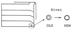 5). Modification of rivets securing the blades from December 1983 The rivets have been modified to prevent dislocation of shutter curtain blades.A good basic user education on camera care and handling should be continuously given on the careful handling of the very thinnest shutter curtains. Well, the best gift Nikon offered to such careless photographers is the decision of shutter curtain blade parts replacement as discussed earlier on the previous page. This is to save the replacement of whole shutter unit even in the case of shutter curtain breakdown, spare curtains are made available with this decision.