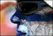 Other than the VIPs' candid shots, the anxious looking Macleren officials and (who else ?) Hakanen's wife who practically glued herself infront of the monitor throughout the race was captured here by my unsteady hand with the long 500 reflex telephoto lens. In another shot, a devoted Finns fan of the 'flying Finns' was actively roaming around the circuit to 'promote' his country and as well as perhaps one of the greatest sporting sensation of Finland that has ever 'produced'. Well, at least he got the guts, I have to admit I don't and I am only contented to raise a Malaysian flag on my wind screen during the National day or major international events. May be turning back the clock and if I am 18 again, may be I would even strip myself off - ha !