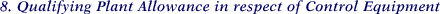 The Income Tax (Qualifying Plant Allowances)(Control Equipment) Rules 1998 provides that from year of assessment 1996, the initial and annual allowance on qualifying plant expenditure incurred on the provision of control equipment will be calculated at a rate of 40% and 20% respectively.