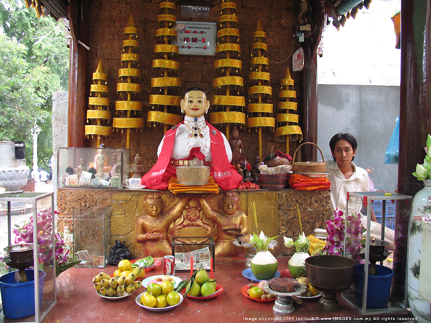 The black-bodied three lions (or leopards ?) is another popular spiritual spot for local to perform family matters (mainly protection from evil and intrusions by others). One popular mean is to feed the leopard with eggs. I witnessed a even of spiritual ceremony where you can also ask the temple's assistant to perform the task for you. The black leopard (still wondering was it a leopard..) has a green crystal in its eyes.