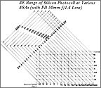 AE Range of Silicon Photocell at Various ASAs (with FD 50mm f/1.4 Lens) Programmed Combinations of Shutter Speeds and Aperture in Programmed AE (with ASA 100 film) Only available in PDF Format (131k)How does this wide metering range benefits ? Well, it is good for photographic applications such as photomacrography and photomicrography in which dim light conditions are common, the A-l's metering range will then be of great help. The A-1 has several features that has helped and made this range so wide. First, there are 16 shutter speeds you have to choose from, varying from 1/1000 sec. to a low range of 30 seconds ! With a selection like this, at least for slower-range shutter speeds, there is a possible speed to cover any light condition the meter can read. A second feature involved is the ASA of the film used. The A-1 again exels here - the ASA Dial has an incredible wide range of settings for ASAs from as low as 6 and as high as 12,880 with calibrated markings in 1/3 increments ! All films currently available as well as any to be designed in the future are therefore usable in this camera. However, just like any of the SLR made prior to popularity of AUTO DX Film coding, the A-1 still requires you to index the film speed manually.