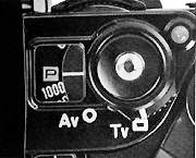 Programmed AE 1) Make sure the aperture ring of the lens is set to the "A" mark. 2) Switch the AE mode selector to Tv. 3) Turn the AT dial to "P" at the upper limit of the shutter speed scale.When you are in this mode, follow the instruction on the setting as described above, all you need is just to focus and shoot. Other than focusing, the camera will function automatically for both aperture setting and shutter speed selection.
