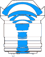<<< --Lense on a Canon New F-1 L.A. Olympic Model, 1984.Aberrations at close focusing distances are improved by a floating system; where certain elements move relative to other elements during focusing. A gelatin filter holder in back of the lens accommodates common types of gelatin filters.