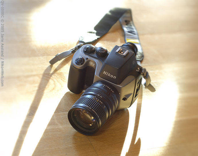 The "standard" lense for the QV-1000 is a 15 elements, dual rings, fast speed 40-160mm 35mm equivalent QV Zoom-Nikkor 10-40mm f/1.4. The lense has a close-focus design to enable macro shooting at 8.7". Lens diameter is a moderate 62mm despite its fast aperture. The alternative option, QV Zoom-Nikkor 11-120mm f/2.0 ED was an ED-glass equipped, extremely complex optical design lense which uses a total of 21 lens elements in its optical construction. The lense has a standard to super-tele zoom range (44-480mm at 35mm equivalent). The closest focusing distance is 3.6' and a filter diameter of a huge 82mm thread size.IF you have the patience to scroll down to this page:- Mr. Jarle Aasland <feedback@nikonweb.com>