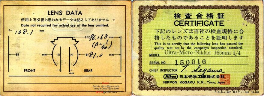 According to Nikon Hand Book by P.Braczko, the Ultra-Micro-NIKKOR 1:4 f=165mm