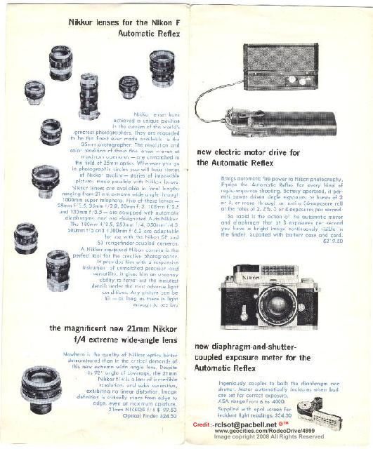 Fixed Focal length Finders | Variframe / Varifocal / Sports Finders | Reflex Housing | Motor Drive | Close-ups | Nikon RF Flash System
