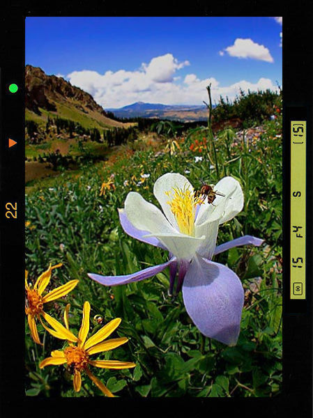 <<<---Shooting close-up with a ultra-wide requires little AF-assistance. So, for the fast AF-Speed die hard, depth of field manipulation is even more functional - before the bee flew away...