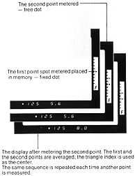 ï The digital values of both the shutter speed and the aperture appearing at the bottom of the viewfinder are sequential weighted averages calculated each time a point is metered.