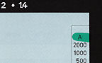 The figures along the top edge of the finder frame denote the f-stops. The complete scale consists of 1.2, 1.4, 2, 2.8, 4, 5.6, 8, 11, 16, 22 and 32 settings. When the lens is mounted properly, the scale shifts to the right or left, correspondingly, to display the maximum aperture of the lens in use always on the extreme right. When the aperture ring of the lens is turned, the green pointer moves to display the preset aperture in green figure.