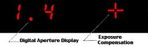 Exposure Compensation Indication: Use of the camera's exposure compensation function is indicated by the lighting of a ( + ) or (-) LED at the bottom of the frame.