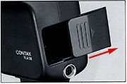 When using the TLA30 with a Contax camera incorporating direct TTL auto flash metering system, merely set the camera to the auto mode and the flash unit to the "TTL" mode. When the flash unit is ready to flash, the camera automatically switches over to the camera's synch speed and two LEDs inside the viewfinder indicate that both the flash unit and camera are ready to flash.