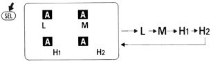 2. Push SEL button several times until imprint lever auto adjust indicatorappears. l With color film, one of the imprint exposure levels -L, M, H1 or H2 will be automatically selected, depending on the film speed set on the camera.