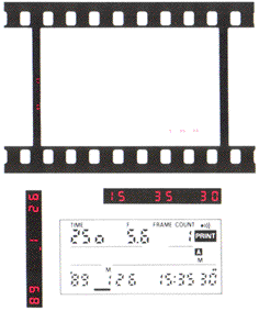 SETTING IMPRINTED DATA To Set Date and Time For both Data Imprint functions, Between Frames and In Frame, date and time can be set and displayed in the LCD. Once date and time are set for either function, you do not need to set them for the other function. (For example, if you set Year/Month/Day for Between-Frames Data Imprint, the Year/Month/Day, Month/Day/Year and Day/Month/Year displays are automatically adjusted for In-Frame Data Imprint.)