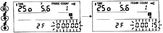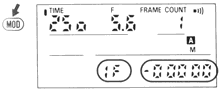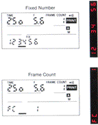 * Sequence number will not increase it film has not been loaded in the camera and advanced to frame 1. ** Sequence number cannot be reset when the MF-24's rear cover is open.Push the button to select the in-frame or between frame function. Next, push the MOD button until the LCD shows Fixed Number display. With eh display now showing, you can imprint any number form 000000-999999. This number do not increase when you release the shutter.