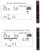 Imprint function. Push MOD button several times until shutter speed/aperture display appears in the LCD. With this display showing, you can imprint the same shutter speed and aperture set on the camera body.
