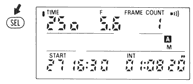 2. Set start time. Using SEL and adjust buttons, set display to desired time using the same method described for Setting date and time. To start the first shooting immediately after setting Interval Timer, adjust the left indication (Day) to - - (located between 31 and 1).