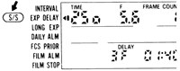 This function lets you set the amount of time before the next exposure and number of shots. To imprint data during Exposure Delay operation: Select desired display using FNC and MOD buttons, then push PRN button so Data Imprint set indicator appears. Releasing the shutter while PRINT is showing causes data selected in Between-Frames and/or In Frame Data Imprint function to be imprinted, even when the function indicator does not appear and data is displayed for Exposure Delay function.