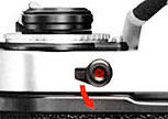 There isn't many lever or button situated at the camera back. The FE's has a battery test lever locates on the camera back just below the rewind knob. It is actually an LED and a spring-fed lever). To check the battery condition, press the lever down - if the LED glows brightly, the batteries provide/contain an ample supply of power.
