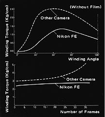 Therefore, the FE uses the same performance-proven system that was originally designed for the compact Nikon FM. The various parts of the mechanism not only ensure flatness and correct positioning, but allow the film to be advanced through the camera at motor-driven speeds up to 3.5 frames per second with a minimum of friction.