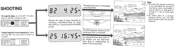 To imprint data, turn the MF-12's data imprint ON/OFF switch to ON. If data imprint is not necessary, make sure the MF-12's data imprint switch is on OFF.