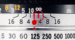 Depth of Field (DOF) Scale: The double series of numbers engraved on the depth of field scale represents F stops: F4, F8 and F16, Once you have focused on your subject, all objects within the distance range indicated on the distance scale will have acceptable sharpness.For example, in the above picture the camera-to subject distance is 3m (10ft) and the lens is set at F16: you will find that the depth of field is from 1.9m (6ft) to 7m (23ft),
