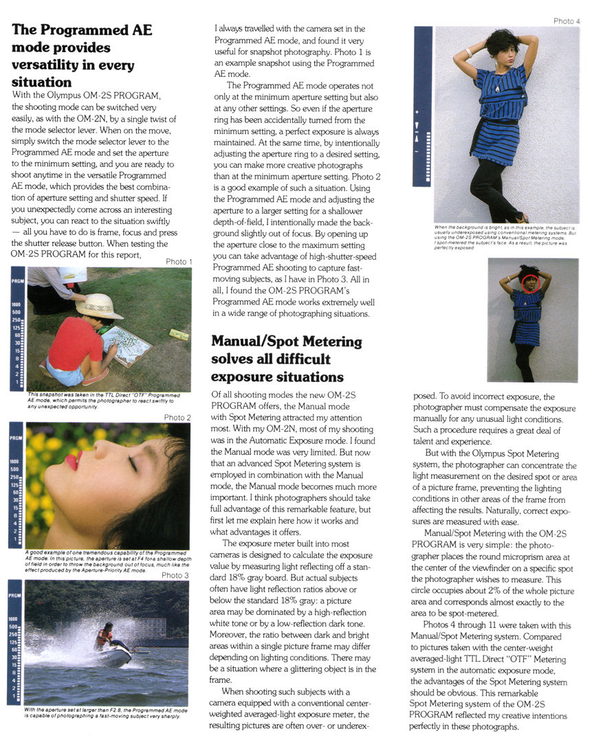 One fine morning, there was a "mysterious" gentleman dropped by my office and left a stack of Olympus VisionAge books to my secretary. He never mentioned his name. In the Volume 3 (03/85), I have found a few detailed articles relating to the OM2SP. The first was written by Mr. Yoshihisa Maitani and another was more like an illustration but it termed as a technical test report by Mr. Masaharu Sato.