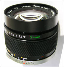 <<< -- Credit: This very well taken image of the Zuiko 24mm f/2.0 courtesy of Mr.Ignacio Banuelos® <ibanuelos@yahoo.com>. Image copyright © 2003. All rights reserved.Zuiko 24mm f/2.0 ultra-wideangle lense