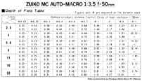 Depth of Filed table. (31k Gif)| Previous | NEXT | 3/5 The new and older version of the Zuiko 1:1 80mm MACRO lense