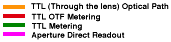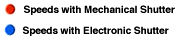 Manual Mode with Shutter Speed Index and LED Meter Display Photometric readings from the TTL exposure meter are indicated by 16 LEDs in 3 colors arranged along a scale of possible shutter speeds. To set the correct aperture in the manual mode, first choose a shutter speed, then turn the aperture ring on the lens until the LED matches the blue index tab indicating selected shutter speed. A red LED at either the "A" or "LT-B" position indicates that the selected aperture/shutter speed combination is either over- or underexposed. A red index tab appears above the shutter-speed scale to remind the user that exposure factor is other than 1X.