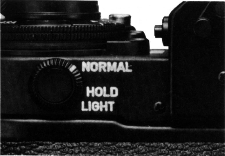 As on "HOLD," the meter, once activated, stays on for 16 seconds even if you remove your finger from the shutter button. In addition, the aperture scale in the viewfinder is illuminated for the same period of time. This mode allows you to meter in low-light situations.
