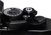 The self-timer/lock lever of the camera has three settings. With the lever at "A," press the shutter button halfway to activate the meter. To release the shutter, gently press the shutter button all the way down. When the level is at "L," the shutter button is locked. It is advisable to turn the lock lever to "L" when the camera is not in use to prevent accidental shutter release and battery consumption. With the lever at "S," the camera's 10-second self-timer can be activated simply by pressing the shutter button. For further details on self-timer photography.