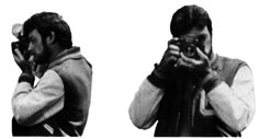 The best way to prevent image blur from camera movement is to hold the camera as steady as possible, with your left hand supporting the camera and lens. Lightly rest your right index finger on the shutter button, and the tip of your thumb on the film advance lever or on the body. Wrap your other right fingers around the action grip. Then press your left elbow to your body and lightly press the camera against your cheek or forehead. For a vertical shot, steady at least one elbow against your body. Spread your feet slightly apart. one foot ahead of the other, and relax. Lean against a steady support if one is available.