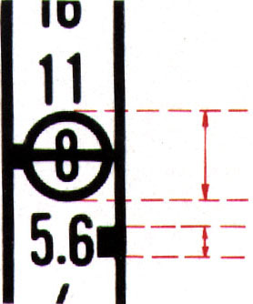 Notes 1. You can also set the aperture first and then turn the shutter dial until the meter needle aligns with the index. However, since intermediate settings on the shutter dial cannot be used, minor exposure adjustments must be made wih the lens' aperture ring. 2. The height of the stopped-down metering index is equivalent to one-half f/stop. | Back to Content Page |