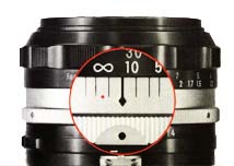 in the picture below the 50mm f/1.4 lens has been focused at infinity (oo). The focusing