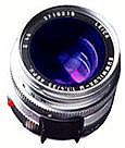 The lens has two aspherical surfaces (last employed by Leitz in the f1.2 Noctilux). The lens is unique among M-lenses, having both outer surfaces concave. The special rectangular lens hood has a cut-out to avoid obstructing the view in the finder.