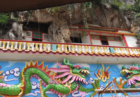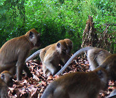 to retouch the colourful scruptures on temple exterior. The photo of the monkeys